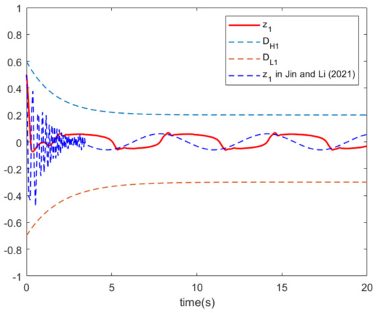 It is easy to conclude from Assumption 2 that , where H represents the upper limit value; this feature can greatly reduce the controller design workload.