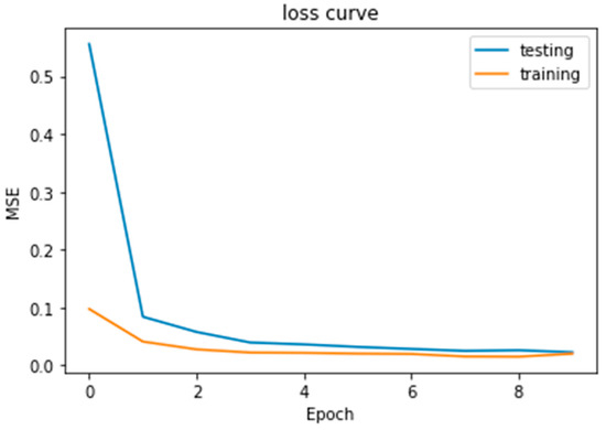The number of iterations, learning rate and number of hidden layer nodes of the LSTM are optimized. After setting the corresponding parameters, the upper and lower bounds are [100,500], [0.01,0.001] and [100,200]. Python is used to train and fit the model, and the loss curve is shown in Figure 4: