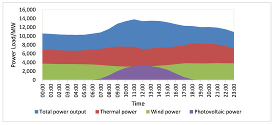 “Source–load interaction” to promote the consumption of renewable energy also requires corresponding implementation of dispatch strategies [17]. According to the requirements of the National Renewable Energy Law and the Comprehensive Supervision Work Plan for Clean Energy Consumption (National Energy Comprehensive Regulation [2021] No. 28) issued by the National Energy Administration, grid enterprises should prioritize the dispatch and full purchase of renewable energy generation. As weather forecasts become more accurate, wind farms and photovoltaic power stations gradually exhibit characteristics of observable and predictable conventional power sources [20,21]. At the same time, through the optimization of dispatch technology on the supply side, the space for renewable energy consumption can be further explored.