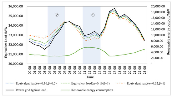 where is the standardized equivalent load at time , ; ω is the renewable energy equivalent coefficient; β is the adjustment coefficient.
