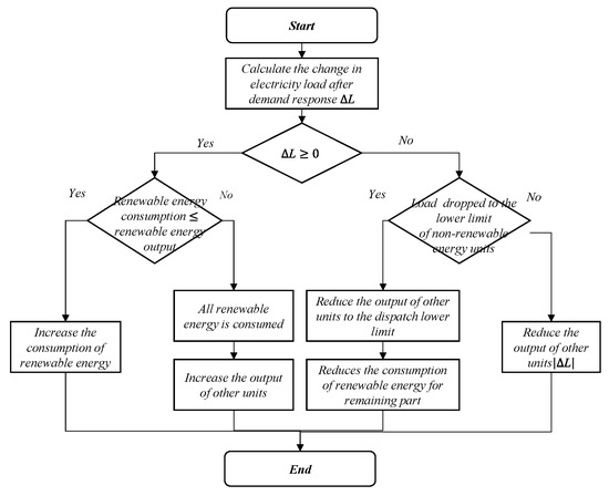 The dispatch strategies framework to promote renewable energy consumption is shown in Figure 5. This framework guides the decision-making process in adjusting energy outputs based on the changes in electricity load after demand response (ΔL) and the availability of renewable energy.
