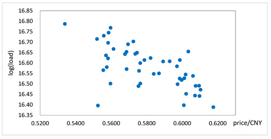 Figure 7 illustrates the causal relationship between load and electricity price. By analyzing user demand response through a model derived from monthly grid load data (on a logarithmic scale) and electricity price data over a continuous four-year period in a specific location, and after adjusting for natural growth trends, the relationship can be expressed as: ln = −0.259P + 16.624. The coefficient for P is −0.259, which signifies a negative correlation between load and electricity price. This indicates that as electricity prices rise, there is a corresponding decrease in the user-side load.