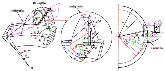 Since is constant, the effective tooth thickness of the microelementary section at a distance from the tooth root is constant , so and can be simplified by comparing with: