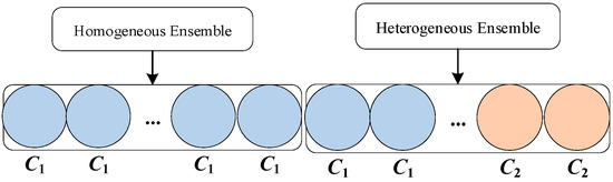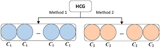 The HCG can combine any two ensemble classifiers and is a general concept. We use C1 and C2 to represent two base classifiers generated by different algorithms, respectively. Figure 1 shows the traditional homogeneous and heterogeneous ensemble diagrams, and Figure 2 depicts the schematic diagram of the HCG. Experiments show that the HCG concept proposed in this paper is reasonable and has better performance than heterogeneous ensemble methods.