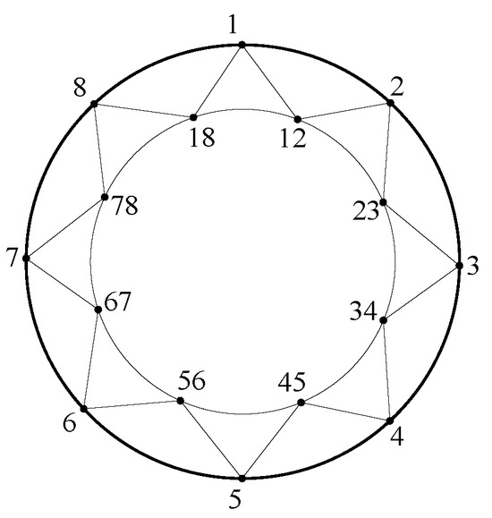 ([21]). Let G be a graph with vertex set and edge set ; a total graph () of G is a graph in which vertex set is and two vertices in are adjacent whenever they are either adjacent or incident in G. In the proof below, let and comprise the vertex set of in which for (Figure 2).