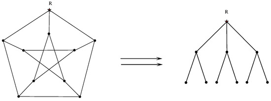 A spanning tree of a graph G is said to be a BFS tree rooted at a vertex r if and only if, for any vertex (u) of G, the shortest distance between r and u in G is equal to the shortest distance between r and u in the spanning tree. It starts at the root and searches all vertices of G at the current depth level before moving on to the vertex at the next depth level (Figure 4).