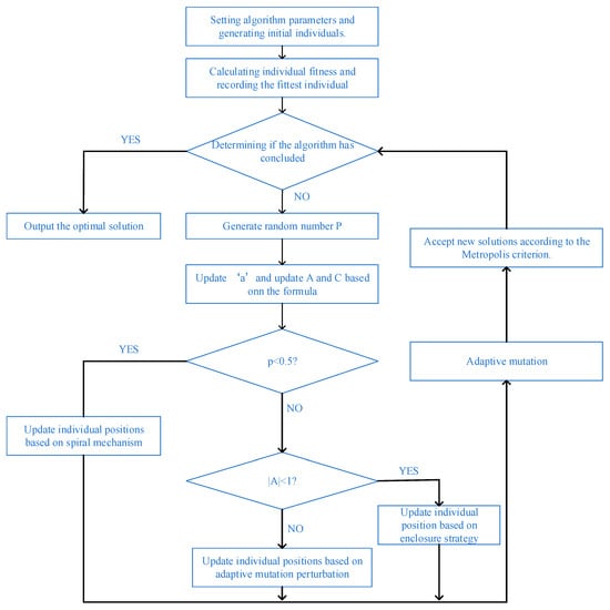 The improved IWOA computational process is illustrated in Figure 4. The specific computational steps are described as follows:
