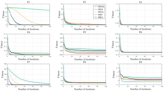 The study compares some test results from the literature [] with those of other algorithms. The population size for each heuristic algorithm is set to 20, and the maximum number of iterations is set to 100. A total of 30 repeated experiments were conducted for each algorithm across various test functions to evaluate their robustness.