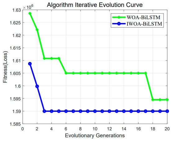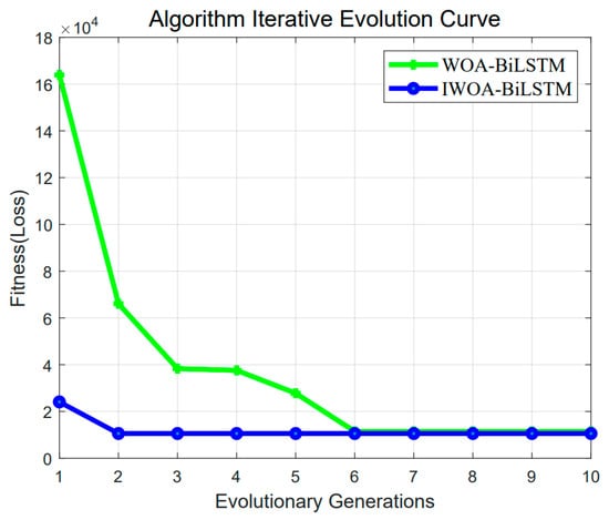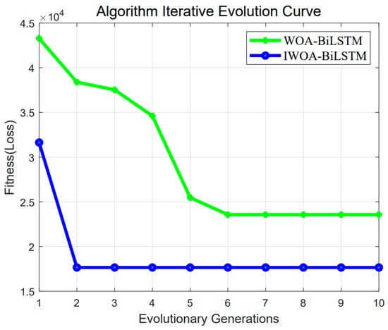 Figure 13 illustrates the variation in data loss during the training process of the BiLSTM model combined with different optimization algorithms. It can be observed from the figure that the convergence speed of IWOA is faster than that of WOA, resulting in better optimization performance.