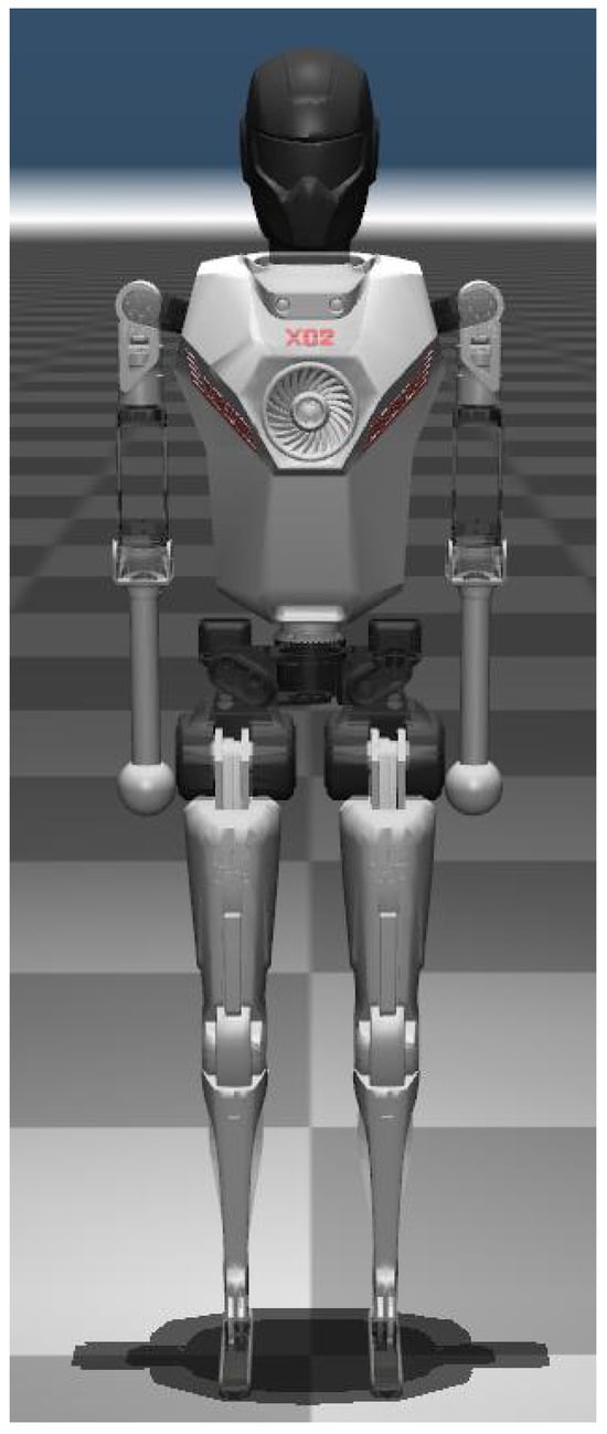 The X02 is a unique, lightweight humanoid robot designed by us, characterized by low energy consumption and long endurance. The leg degrees of freedom and sequence of X02 are: {hip_yaw, hip_roll, hip_pitch, knee_pitch, ankle_pitch}. In this experiment, the X02 robot model, shown in Figure 1, is loaded onto the MuJoCo simulation platform. The robot model parameters and MuJoCo physics engine settings are shown in Table 1. The control algorithm architecture is modified based on the OpenLoong [32] framework. To facilitate the deployment of the control algorithm on the physical robot, we have stripped the simulation portion from the original framework. The upper-level control and lower-level drives communicate using Google gRPC. The control program is deployed on a Lenovo Y9000R laptop with an Ubuntu 22.04 operating system, Intel i9-14900HX × 32 CPU, and 32 GB of memory. The upper-level optimization algorithm runs at 1k Hz, while the lower-level drive operates at 2k Hz.