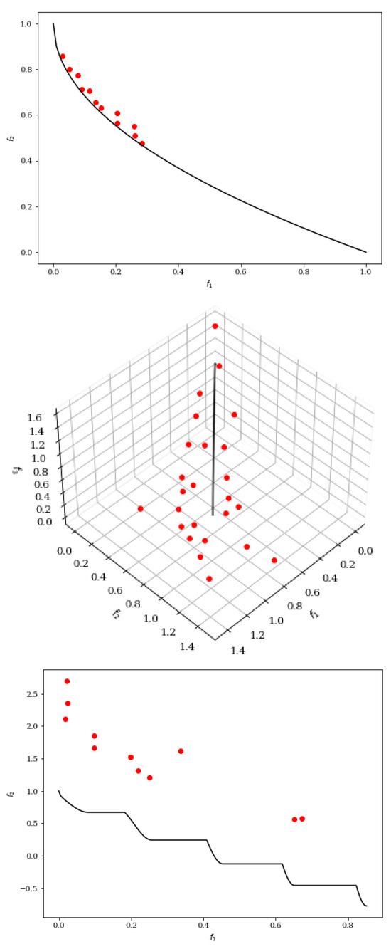 where the number of objectives is denoted by and objective functions . The non-empty feasible decision space S is a subset of the decision space , and is the decision vector which satisfies all the constraints. In this study, we only consider m = 2 and 3 as multi-objective problems.