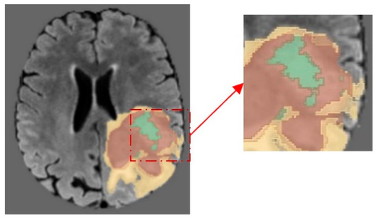 Brain tumors are life-threatening diseases of the nervous system, with gliomas being the most common primary brain tumors in adults. Glioma originates in the brain’s glial cells [1] and is categorized into low-grade (LGG) and high-grade (HGG) forms, with HGG being more malignant due to rapid growth and a two-year average life expectancy for affected patients. Glioblastoma (GBM) is a high-grade astrocytoma, classified as a World Health Organization (WHO) [2,3] Grade IV tumor. It represents the most aggressive and prevalent form of malignant primary brain neoplasm in adults. The accurate segmentation of brain tumors is crucial for diagnosis, treatment, and surgical planning [4]. However, automatic segmentation is challenging due to variations in tumor shape, size, and localization. Despite advancements in deep learning techniques, the accurate segmentation of enhanced and core tumor tissues remains difficult due to their smaller size and similar texture to the whole tumor. GBM is characterized by intrinsic heterogeneity and carries a uniformly poor prognosis, with a median patient survival rate of 14 months post-treatment posing substantial challenges for clinical management [5,6,7].