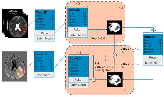 The iterative process of feature down-sampling and up-sampling is meticulously tailored for execution on the brain dataset. Adjustments are made to the pooling parameters and step sizes, particularly at the network’s deepest layers, to accommodate the distinctive attributes of the medical imaging data. Zero-padding is employed to facilitate the interaction of information between the network’s layers. Following each convolution operation, the length of the resulting vector is restored to its original length through zero-padding. This ensures that the convolution layers operate on input vectors of consistent dimensions, thereby preserving the data’s integrity throughout the network’s processing stages.