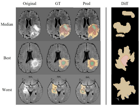 Previous medical image segmentation studies have encountered challenges in discerning different adjacent pathological areas. For instance, within the dataset employed in our investigation, distinguishing between the enhanced tumor (ET) and the edema/necrotic tissue (ED), as well as differentiating the necrotic tumor core (NCR) from the surrounding tissue, has been notably difficult.