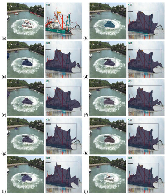 Finally, we conducted ablation studies to evaluate the performance of each component of the full MKA module on the MariBoats and ShipInsSeg datasets, as shown in Table 9 and Table 10, respectively. We observed that the MKA module with skip connections improved the AP by 3.3% and 4.4% compared to the baseline model on the MariBoats and ShipInsSeg datasets. The performance increased significantly as CBAM was gradually integrated with greater kernel sizes (1 × 1, 3 × 3, 5 × 5, and 7 × 7) because larger kernels were able to capture more contextual information. Additionally, the skip connections enabled better feature fusion and improved segmentation performance, as they are essential for feature refinement and maintaining spatial and multiscale information.