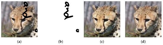 - Pathak, D.; Krahenbuhl, P.; Donahue, J.; Darrell, T.; Efros, A.A. Context encoders: Feature learning by inpainting. In Proceedings of the IEEE Conference on Computer Vision and Pattern Recognition, Las Vegas, NV, USA, 27–30 June 2016; pp. 2536–2544. [Google Scholar]
