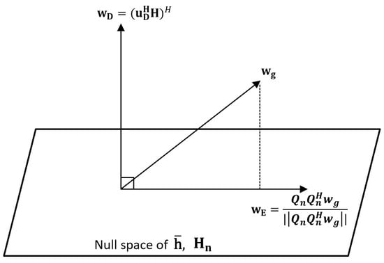 Based on the relation of (9) and (21), and  can be orthogonally decomposed by  and  as shown in Figure 2. The distribution of the AN term in (23) is then derived as