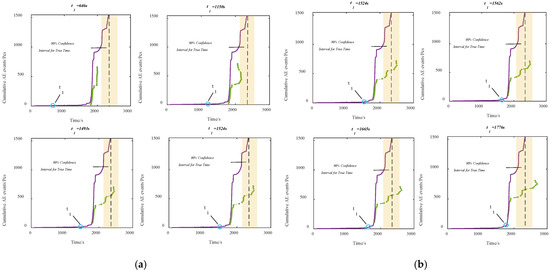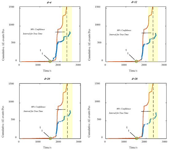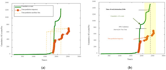 - For predicting rock failure times, the earliest prediction time deviates from the actual failure time by 143 s. The accuracy rate of predicted time points falling within a 90% confidence interval of the actual failure times is 100%