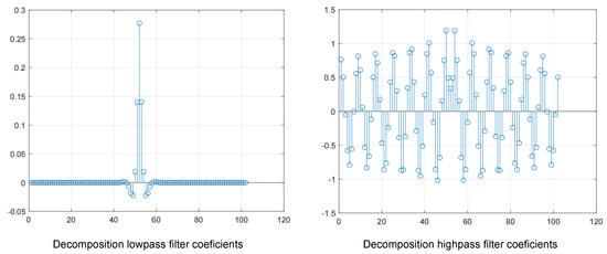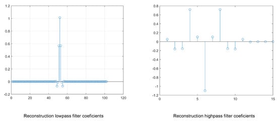 where is the decomposition low-pass filter coefficients and is the decomposition high-pass filter coefficients. In Table 2 and Figure 2, their partial values are shown.