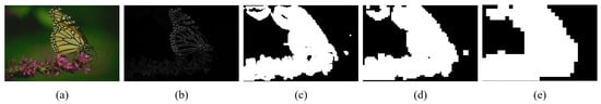 where denotes the dilation operation with , denotes the erosion operation with , denotes the opening operation with , denotes the edge image obtained by the multi-structure anti-noise morphological operator. This operator suppresses edge noise effectively, smooths the boundaries of larger objects, and retains important structural information by utilizing the difference in secondary corrosion.