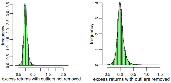 In the pursuit of data exploration and modeling, data preprocessing undoubtedly plays a pivotal role. Leveraging Python’s exceptional capabilities, we skillfully aggregated the scattered related data into a comprehensive dataset, laying a solid foundation for subsequent data analysis tasks. To eliminate potential dimension differences among various characteristic indicators, we employed standardization techniques, transforming each indicator into a standard form with a mean of 0 and a standard deviation of 1. This measure significantly enhanced the comparability among features, ensuring the accuracy and reliability of the model. However, the securities market is unpredictable, with sudden events such as circuit breakers and trading halts occurring frequently. These unforeseen circumstances often lead to missing or abnormal data for some stocks. These irregular data points, like hidden reefs, can severely hinder the smooth fitting of the model if not promptly addressed. For missing values, we initially inspected the dataset using Python’s Pandas library to identify and record the number and location of missing values. Since the proportion of the missing data was relatively small, we opted to directly exclude these missing values. As for outliers, we introduced the powerful statistical graphical tool of box plots, which helped us accurately identify and eliminate outliers in the dataset. The box plot, with its intuitive and clear characteristics, not only displays the overall distribution of the data but also allows us to readily distinguish which numerical points deviate from the mainstream, becoming “outliers” or “abnormal values”. Taking excess return rate, a core indicator, as an example, we utilized the robust functionality of R language to create a box plot and, based on its results, excluded outliers that fell outside the box plot boundaries. This meticulous data cleaning process provided strong support for the subsequent construction and optimization of the model. The results indicate that the distribution plot of excess return rates after removing outliers is closer to a symmetric distribution (Figure 3).