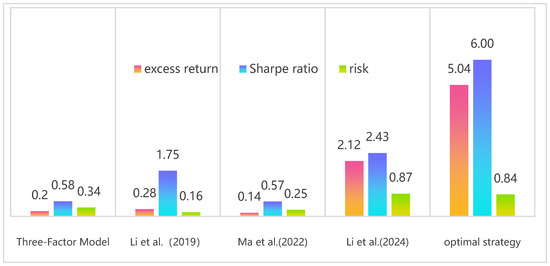 (1) Construction of investment factors. Using the k-means clustering analysis method for feature indicator clustering, the findings indicate that with k = 6 (refer to Figure 4), all anomalous factors are grouped into six distinct clusters. Notably, Factor 5 (identified in light blue) exhibits no significant associations with any anomaly feature indicators, suggesting its unclear classification within the predefined categories. Therefore, optimal categorization seems to be achieved with five distinct groups of feature indicators. Detailed examination of Figure 5 reveals specific observations. Factor 1 prominently features indicators such as transaction volume (TV), turnover rate (TR), price change percentage (PCP), and Beta coefficient. Factor 2 emphasizes liquidity, primarily represented by the liquidity ratio (LR). Factor 3 encompasses a broad array of indicators including book-to-market ratio (BM), earnings-to-price ratio (EP), earnings per share to price ratio (EPSR), net asset value to price ratio (NAVSR), revenue per share (RPS), stock value score (SVS), net asset value per share (NAVPS), cash flow per share (CFPS), number of shares traded (NST), enterprise value (EV), and market capitalization (MC). Factor 4 focuses on indicators related to earnings volatility (EVR), unsystematic risk (UR), and correlation coefficient (CC). Finally, Factor 5 addresses indicators such as earnings growth rate (EGR), earnings per share (EPS), return on equity (ROE), total market capitalization (TMC), stock growth score (SGS), net asset growth rate (NAGR), main business revenue growth rate (MBRG), and incremental operating cash flow (IOCF). The integration of correlation coefficient analysis results reveals that highly correlated indicators are grouped together. Drawing insights from the seminal literature (Li et al., 2019 [22]; Gu et al., 2020) [6], further investigation identifies Factor 1 as highlighting transaction frictions, Factor 2 as emphasizing liquidity considerations, Factor 3 as representing value attributes, Factor 4 as encapsulating risk factors, and Factor 5 as focusing on profitability aspects.