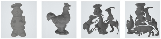 UWAOR [43,44]: The UWA object recognition dataset (UWAOR) is one of the most classic 3D object recognition datasets. It contains five models and fifty scenes, where the scenes are generated by randomly occluding four to five models together. The scene data includes targets with varying degrees of self-occlusion and noise. Figure 6 shows two example models and two example scenes from the UWAOR.