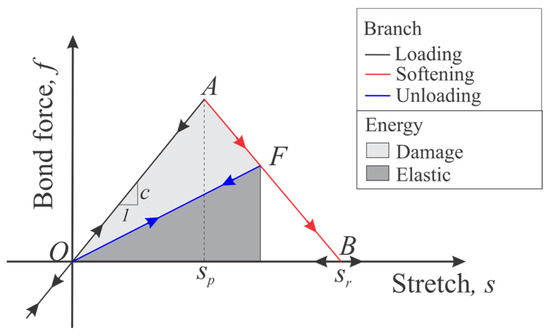The bilinear bond force–stretch relationship is shown in Figure 2, where the parameters characterizing such a relationship are: