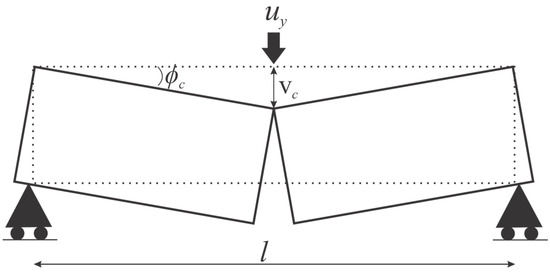 In Figure 7, the ductile-to-brittle transition behavior is presented by exploiting a representative numerical force–deflection curve of each beam size. In order to measure the brittleness of the structure, a dimensionless parameter named stress brittleness number, , proposed by Carpinteri [62], is here employed. Such a parameter is computed, in terms of the fracture energy, as: