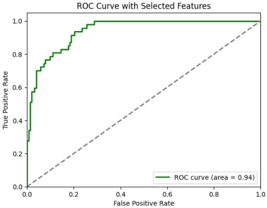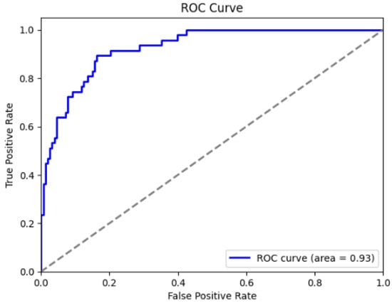 The ROC AUC Score (Area Under the Receiver Operating Characteristic Curve) was computed to evaluate the model’s discrimination capacity across varying threshold settings, with values approaching 1.0 indicative of strong classification performance. The ROC curve, plotted from the calculated False Positive Rate (FPR) and True Positive Rate (TPR) values, visually represented the trade-off between these two metrics. The area under the curve (AUC) acted as a solid indicator of the model’s capacity to differentiate between categories, with elevated AUC values indicating better sensitivity and specificity. This comprehensive evaluation provided an in-depth perspective on the model’s accuracy, reliability, and generalizability within the clinical context.