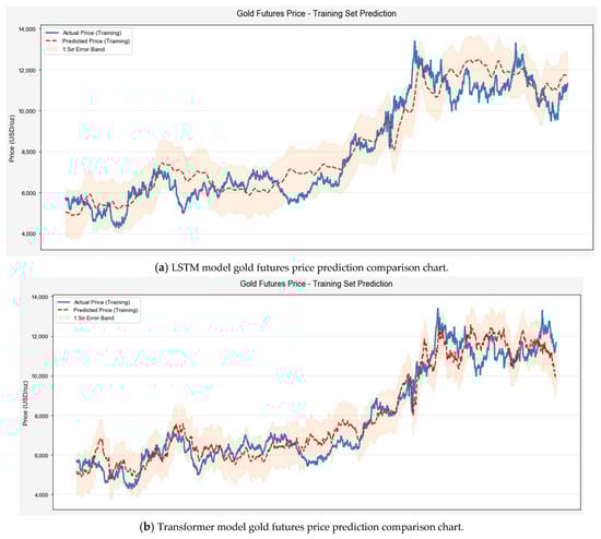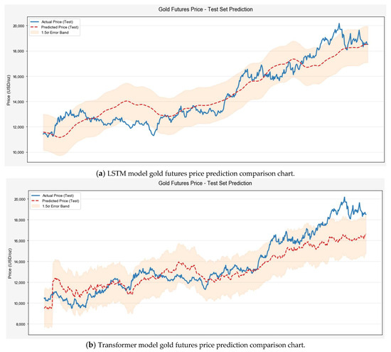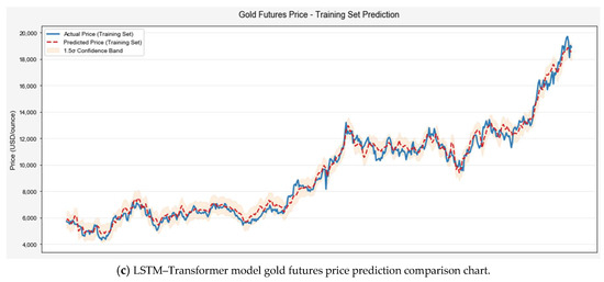 The LSTM–Transformer hybrid architecture demonstrates temporal modeling strengths for gold futures price forecasting but faces two key challenges. First, the integration of LSTM’s sequential recursion with Transformer’s global attention mechanism substantially increases the parameter count and computational demands compared to single-architecture models, with complexity inherent to this dual-module design. Second, the combined effects of LSTM’s gating mechanisms and the self-attention module’s global focus create delayed responses to high-frequency local patterns, resulting in higher MAE metrics than locally sensitive models like CNN–GRU–Attention. To address these limitations, potential solutions include implementing sparse attention mechanisms to reduce computational redundancy and integrating dynamic regularization with multi-frequency feature fusion strategies. These enhancements would simultaneously improve computational efficiency and local pattern recognition, ultimately strengthening the model’s predictive reliability in volatile market conditions.