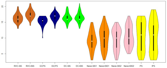 Note that there are 21 known and experimentally verified TFs related to the cell-cycle process, as stated in Wang et al. [28]. We then compare the number of confirmed TFs selected in the screening procedure mentioned earlier. The results are reported in Figure 1. From this figure, it can be concluded that RVC-ISIS performs best among all screening procedures, and RVC-SIS performs best among the screening procedures except the iterative ones.