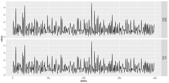 where represents the price–dividend ratio of the S&P 500 index in state i. Then, with a random draw of observations, the time series asset return data can be generated according to the state returns.