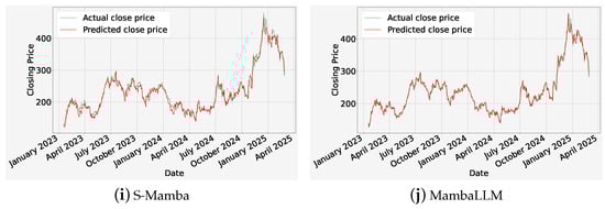 Emerging models specifically designed for financial applications continue to push the boundaries of stock price prediction. Novel architectures such as SSA-BiGRU-GSCV, DLinear, SegRNN, and TimeMixer demonstrate how specialized designs can improve forecasting accuracy [31,32,33,34]. These developments highlight the ongoing evolution of neural network applications in financial forecasting and underscore the potential for our proposed LLM-augmented Mamba framework to make a significant contribution to this field.