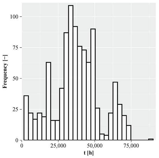 On the other hand, surrogate modelling has gained significant popularity for reliability estimation [,]. In probabilistic modelling, system reliability is often represented using exponential or Weibull parametric families [,]. However, such oversimplifications typically result in poor estimates that are inadequate for complex systems [,]. One of the gold-standard methods for reliability estimation is finite mixture modelling [,,,]. The applicability of finite mixture models (FMMs) for reliability data is well established in the literature, either in the separation of system failure modes [,] or component-level heterogeneity [,,]. Additionally, this semi-parametric approach is capable of modelling a wide range of random phenomena beyond reliability data [,,,,]. While FMMs are a part of probabilistic modelling, their inherent properties also make them useful for uncovering additional meaningful insights about the systems being analysed [,].