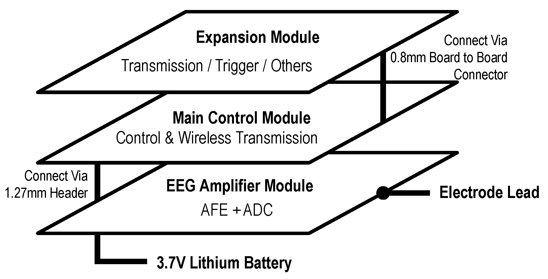 Figure 2, a modular hardware architecture was adopted, consisting of three primary components: the EEG amplifier module, the main control module, and the expansion module. This design approach enhanced flexibility and scalability while maintaining cost-efficiency.