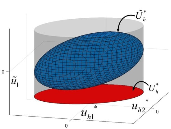 If there exists an invariant set of system (6) with respect to the control law (11), and this set lies within the state constraint set , then (11) represents the optimal solution to the optimization problem (8) within this invariant set. Consequently, the closed-loop form of system (9) can be established for further analysis. To compute this invariant set in the following discussion, the controlled system is assumed to satisfy the following condition.