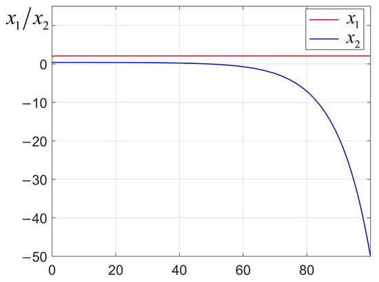 For initial value , the error state trajectory, as shown in Figure 9, converges to .