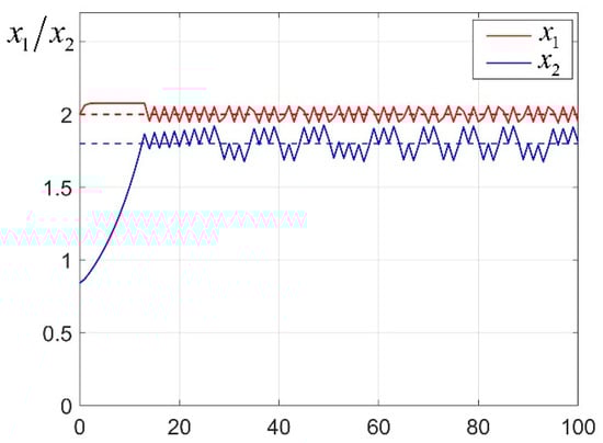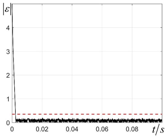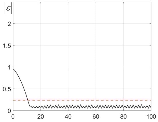 Therefore, the size of ultimate bounded region represents the steady-state error of the system. The norm of the state error starting from is shown in Figure 6. As shown in Figure 6, this bound aligns with simulation results. The state waveform is illustrated in Figure 7.