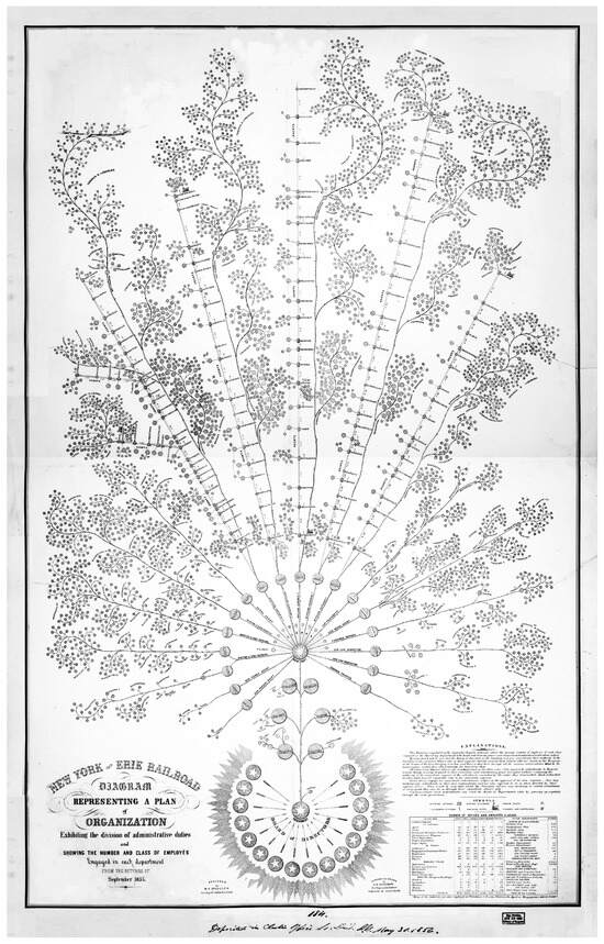 Organizational diagram of the New York and Erie Railroad, created by D. C. McCallum and G. H. Henshaw in 1855. Retrieved from the Library of Congress (https://www.loc.gov/item/2017586274/, accessed on 1 February 2025).