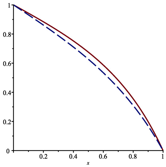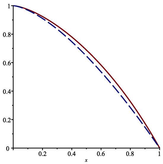 The functions and in the interval are displayed in Figure 3.
