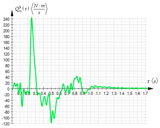 Further, the polynomial functions characterizing the entire work process were substituted into the analytical expressions, resulting in the time variations of the torque and its first- and second-order time derivatives, as illustrated in Figure 7, Figure 8 and Figure 9: