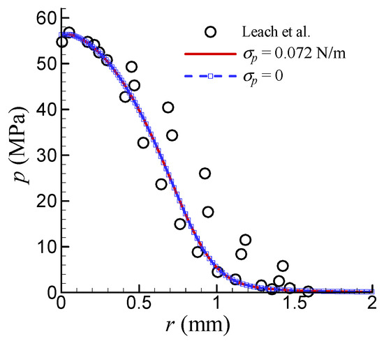 Comparison of the effect of surface tension on the pressure distribution [9].
