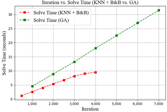 - KNN + B&B Computational Optimization Enhancement: This study integrates the k-Nearest Neighbor (KNN) classification algorithm with the Branch and Bound (B&B) method, effectively reducing computational complexity and improving convergence speed. By introducing a machine learning-assisted branch selection mechanism, KNN predicts the quality of candidate scheduling solutions during the B&B search process, prioritizing the expansion of branches with higher potential. This accelerates the scheduling optimization process and significantly enhances the model’s real-time adaptability in complex emergency scenarios, providing a more efficient and intelligent solution framework.