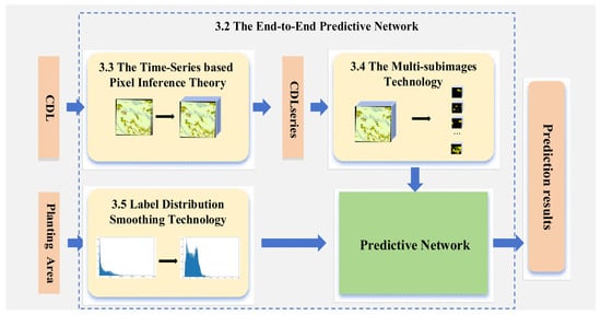 Our goal is to remove the classification step from the area estimation process in the question of , and develop a direct method that estimates crop planting areas from data to target without intermediate steps. Accordingly, a novel method called the “End-to-End Predictive Network for Accurate Early Crop Planting Area Estimation” has been proposed. The overall structure and workflow are introduced.
