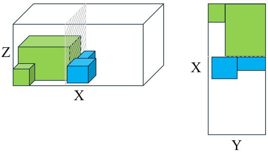 For any remaining spaces where , the space must be modified to respect the newly created virtual wall. Specifically, the space is truncated by shifting its lower boundary along the X-axis; the original coordinate is updated and set equal to . This adjustment ensures that the usable portion of the space lies entirely in front of the virtual wall, preventing any future placement of boxes in the areas reserved for the previous customers. The algorithm iteration is terminated if the is empty upon removing the spaces.