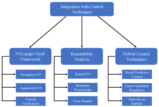Reachability analysis has emerged as a cornerstone for safety assurance in hybrid systems. ReachNN implements Bernstein polynomial-based approximation with bounded error propagation, enabling formal verification of neural controllers against temporal logic specifications [3]. The methodology particularly excels in high-dimensional state spaces where traditional Hamilton–Jacobi formulations face computational intractability. There are three principal integration strategies demonstrate efficacy across control scenarios.