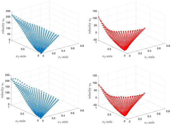 Case 2: We assume that boundary conditions at are unknown. So, to obtain the numerical solution, the velocities and at are moved to the left-hand side of the equation and used to find the numerical solution, in order to determine and at .