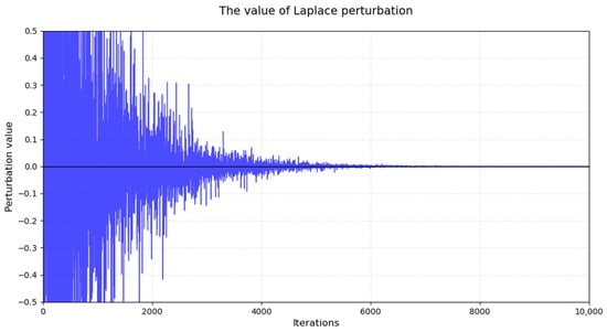 (e) PSO-LD: This algorithm extends particle swarm optimization (PSO) by integrating a dynamic Laplace perturbation term. PSO-LD enhances global search capabilities and escapes local optima more effectively, which also affects its convergence. The Laplace perturbation, characterized by its sharp peak and heavy tails, introduces variability that aids in both local refinement and global exploration. The scale parameter adjusts dynamically, balancing exploration and exploitation across iterations. Figure 3e depicts PSO-LD.