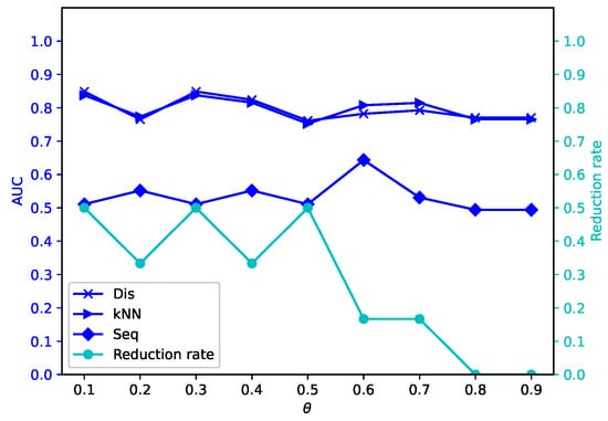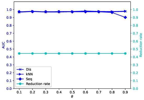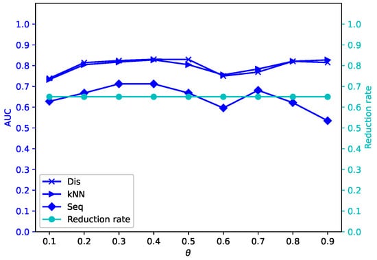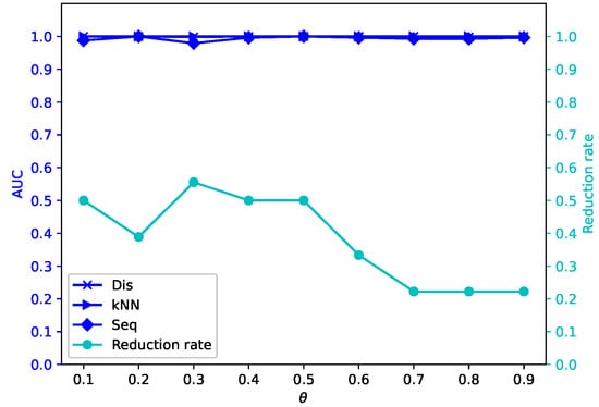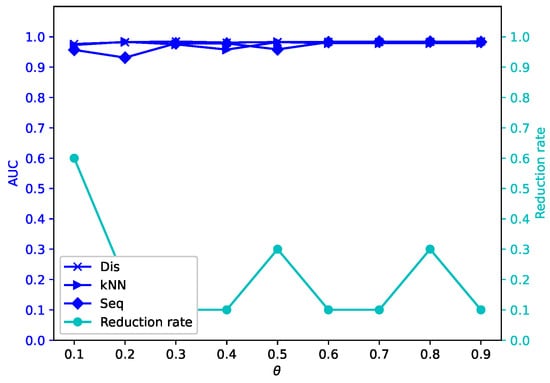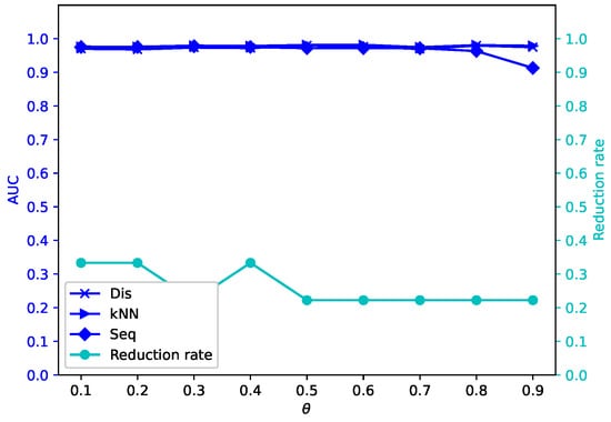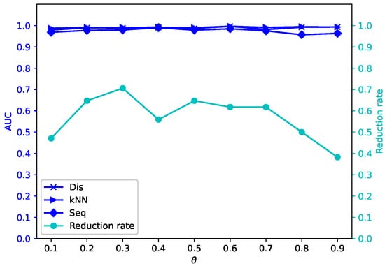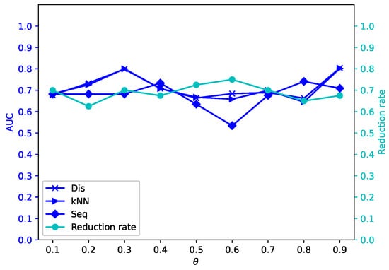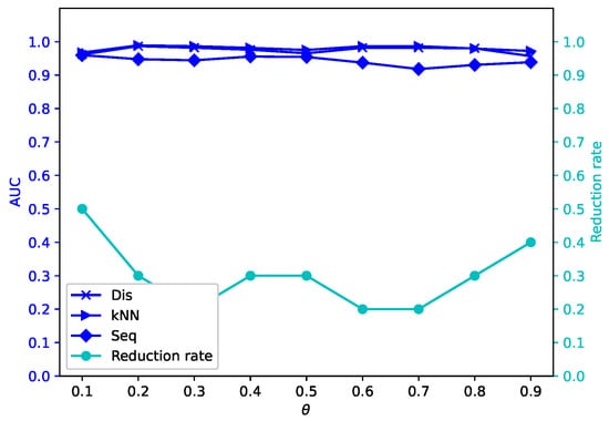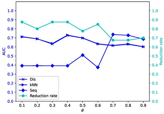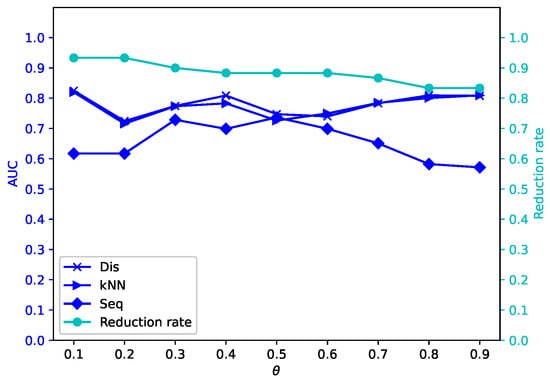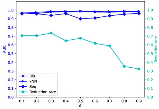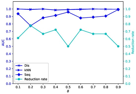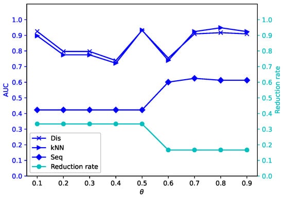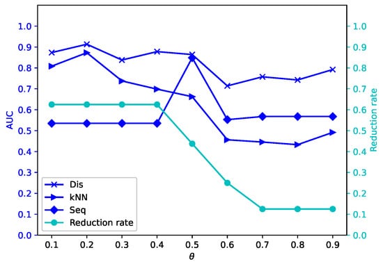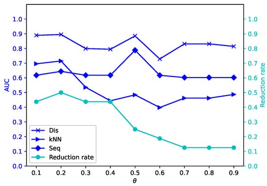 Average reduction rates and AUC values for different by -MSVIS on Io ().